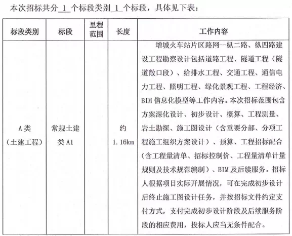 (公告截图)具体的情况如何,一起看看!两条道路,涉及8.26亿元增城火车站片区路网正式招标据了解,项目总投资约82588.28万元(含铁路代建 建安费16835.00万元),本次投标范围工程建安费约37158.87万元。本次招标主要涉及纵二路、纵四路两条道路的建设。包括道路工程、隧道工程、给排水工程、交通工程、通信电力工程、照明工程、绿化景观工程、工程经济等。