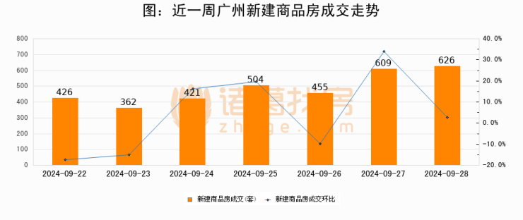 【广州成交日报】09月28日新房成交626套;涨价房源570套