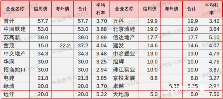 3月信用债发行总量与上月相比翻倍,原因一是从历史记录来看,3、4月为年度集中发行时段,特别是2020年、2021年3月的信用债发行额均为全年较高峰。二是监管方明显提升了发行审批速度,据不完全统计,银行间市场交易商协会3月发布的房企中票发行注册通知书达14个,而2月、1月分别为1个、4个。此外,信用债融资充分适应行业发展趋势,抓住政策窗口期,拓展发行品种,如中国铁建发行并购债,电建地产发行住房租赁专项债等。