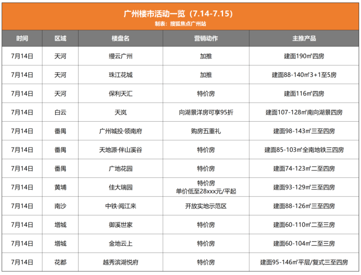 此外,荔湾的雅居乐715、增城的御溪世家、金地云上、花都的越秀臻悦府等项目都推出特惠房活动。