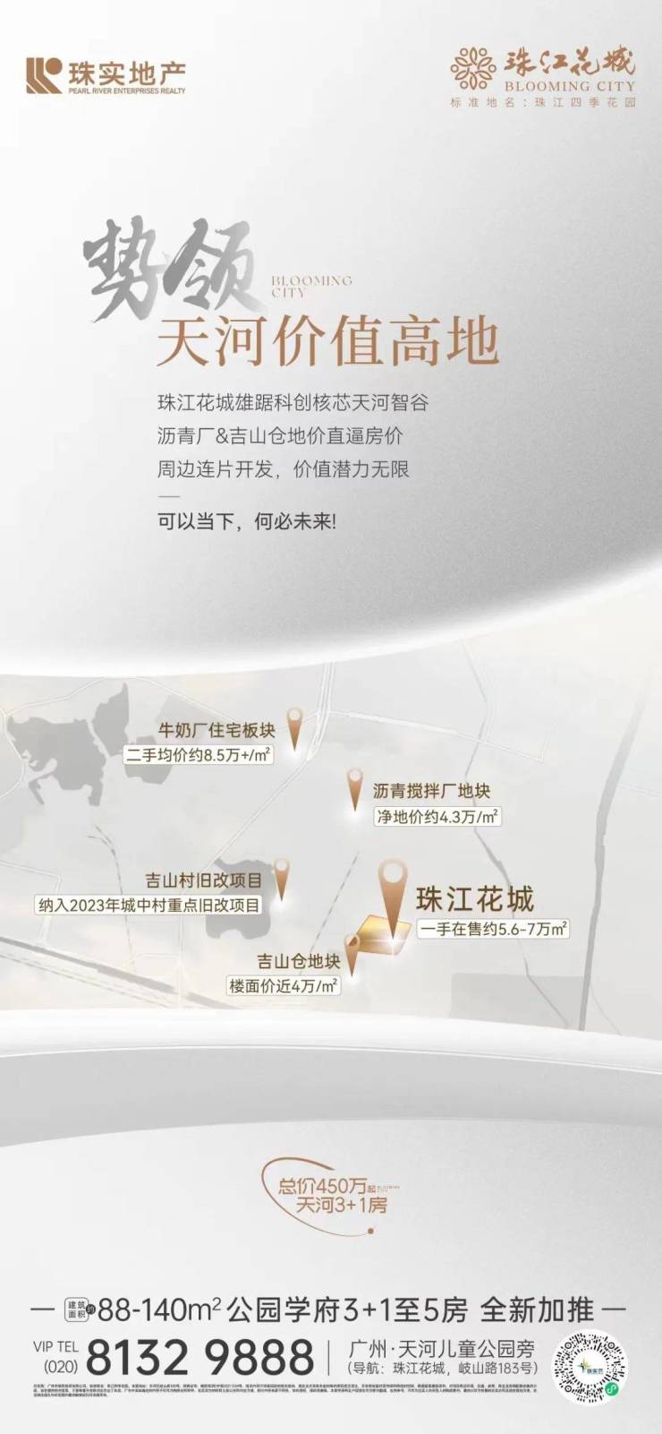 天河东的“老网红”项目,珠江花城目前在售五期组团,本周将加推建面约88-140㎡3+1至5房全新产品。