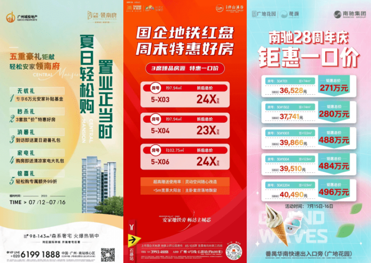 天河的保利天汇则做了116平四房的专场优惠,总价低至710万。同时推出周末头单99折,成交送品牌好礼活动。