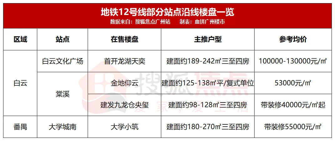 不过,该线路沿线楼盘较为稀缺,主要集中在白云棠溪、广州大学城等片区,其中首开龙湖天奕售价已达到10+万元/㎡水平。