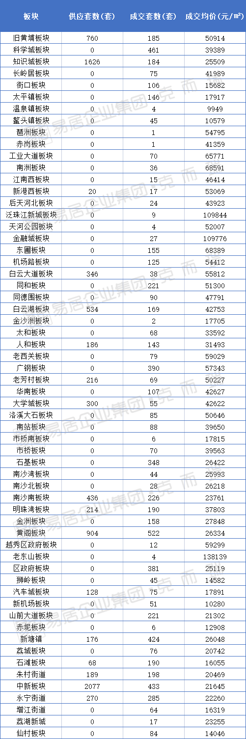 毫不意外,前十高价板块区域被天河、越秀、海珠三区包圆了,其中天河占4席,越秀海珠各占3席。
