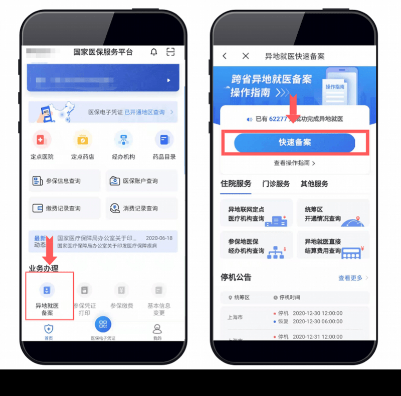 “国家医保服务平台”APP和“医保就医快速备案”小程序上,可办理跨省的异地就医备案。