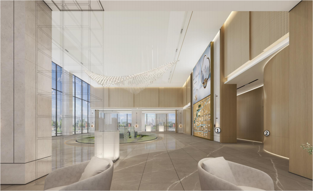 而即将亮相的项目营销展厅内部则主打新东方风格,其特点主要为富有中国传统文化色彩的背景,整体对称,空间充满层次感,线条简洁明朗,将传统风的繁琐用简约的现代风来代替,将两者的元素融合在一起,体现出中国传统的神韵,简约的现代设计风。