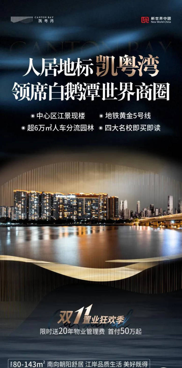 踩着“双11”节点,新世界凯粤湾也重磅推出了【置业狂欢季】活动,精选江岸新品,建面约80-143㎡南向朝阳舒居,全南向主套三房/天幕江景四房,首付50万起,更限时赠送全屋智能家私家电。