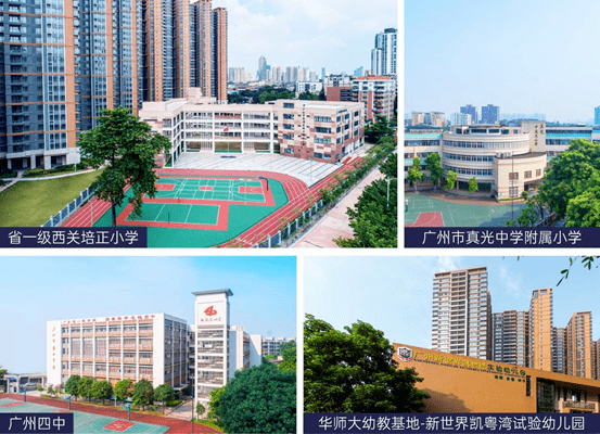 3、华师大幼教基地-新世界凯粤湾实验幼儿园、西关培正小学、真光中学附属小学、广州市第四中学等环绕周边,硬核老牌名校,教学质量不会差。
