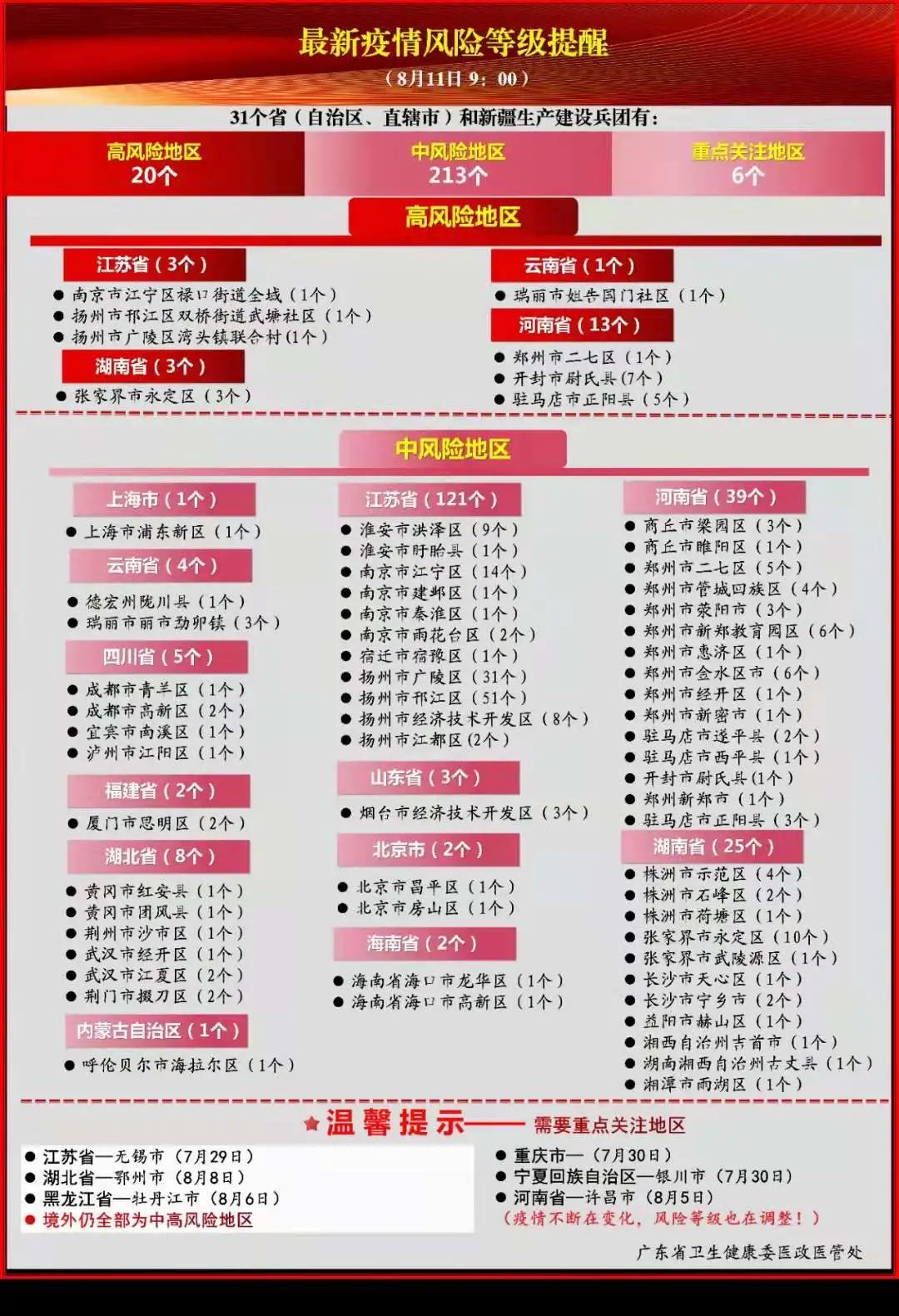 全国疫情风险地区较新汇总!(截至8月11日上午9:00)