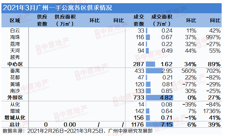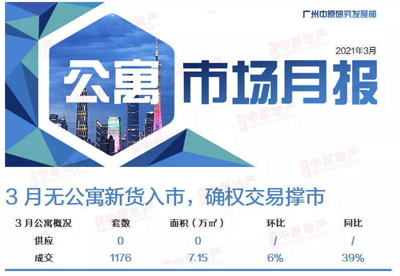 广州公寓市场春节后供应收紧明显,3月无新货入市,市场累计43天无公寓新增供应。本月市场成交主要依靠个别项目的大批量确权,环比微涨6%,为1176套7.15万㎡。