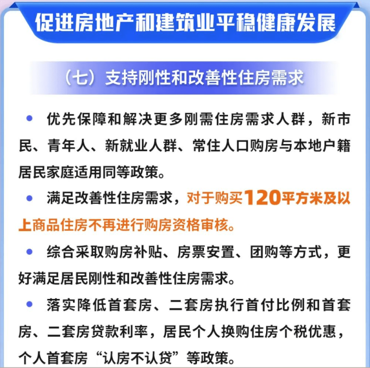 值得一提的是,苏州对该市于9月8日印发的《关于促进全市经济持续回升向好的若于政策措施》进行解读。其中提到,为满足改善性住房需求,对于购买120平方米及以上商品住房不再进行购房资格审核,以保障和解决更多刚性住房需求人群,新市民、青年人、新就业人群、常住人口等适用同等政策。