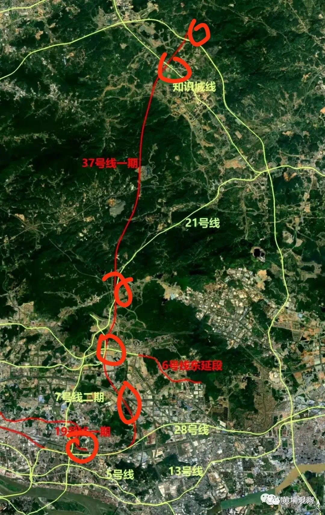 早前网传37号线黄埔区段站点。仅供参考,以最终官方公布为准
