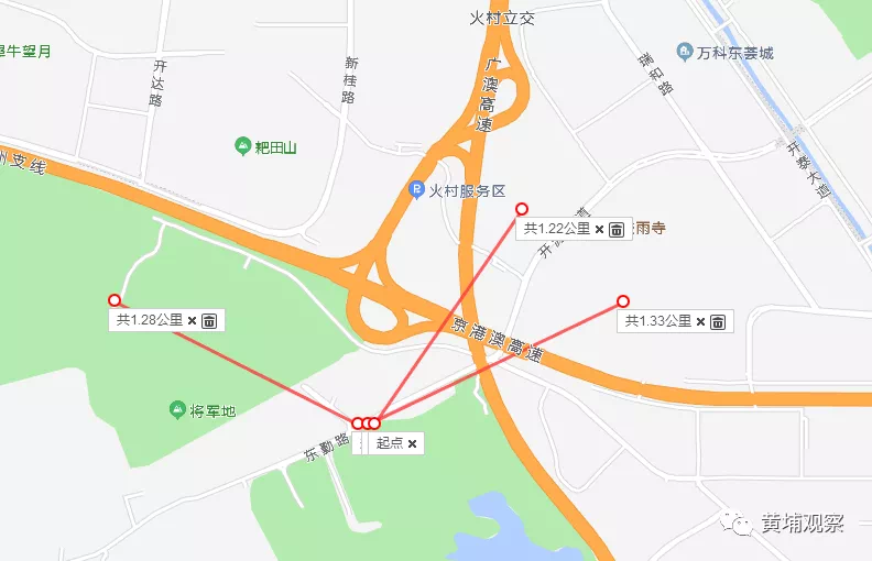 不过,由于37号线南下直线要穿过广石化厂区,作为安全敏感点,这一段线路可能要改道。所以,37号线广石化区域的线路走向,还有另一个版本:即在开达路南延线附近向东二环立交附近偏移,拐个弯增加大约4公里,从大田山东侧边缘绕过广石化厂区,在回到广园快速上进入黄埔站。