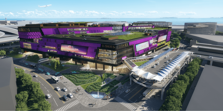 近年最瞩目的大型一站式零售娱乐商业新地标11 SKIES,毗邻香港国际机场及港珠澳大桥,是在香港航天城内的重点综合式发展项目。该项目由新世界发展旗下的K11负责营运,总楼面面积达380万平方呎,云集超过800家店铺,涵盖逾120种餐饮概念,并设有全港较大的室内娱乐空间,打造令人耳目一新的体验式娱乐。此外,11 SKIES还设有三幢甲级写字楼,分别用作金融及财富管理、医疗健康服务及世界知名企业在大湾区设立的区域办公室,写字楼将于今年中率先入伙,预计会为经济增长注入新动力。