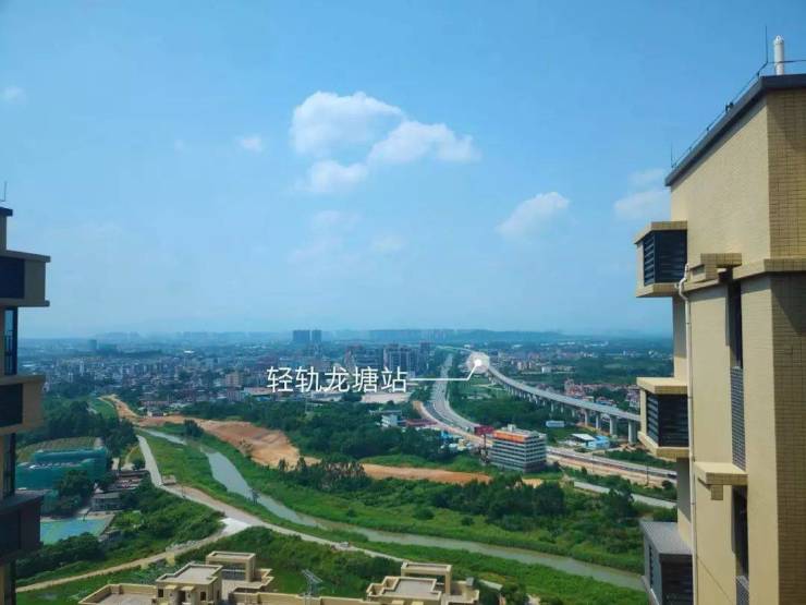 上图为从信业郡城一期看向龙塘站,未来项目将从小区前广场架起横跨银盏河的桥梁,届时从项目开车前往龙塘站5分钟即可到达。广清同城一小时生活圈,在信业郡城正在成为现实。