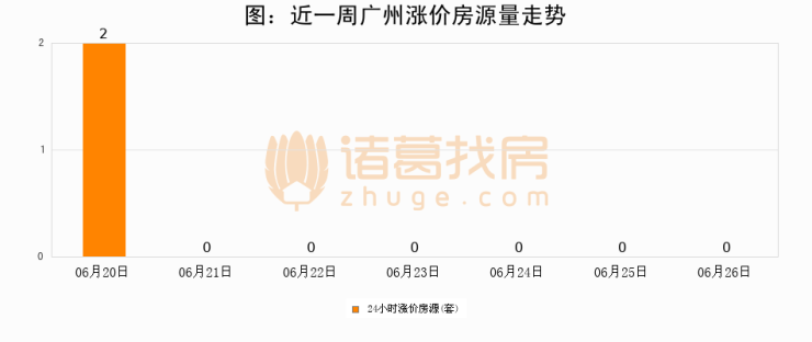 根据诸葛找房数据显示,广州24小时涨价房源量为0套,较06月25日持平。