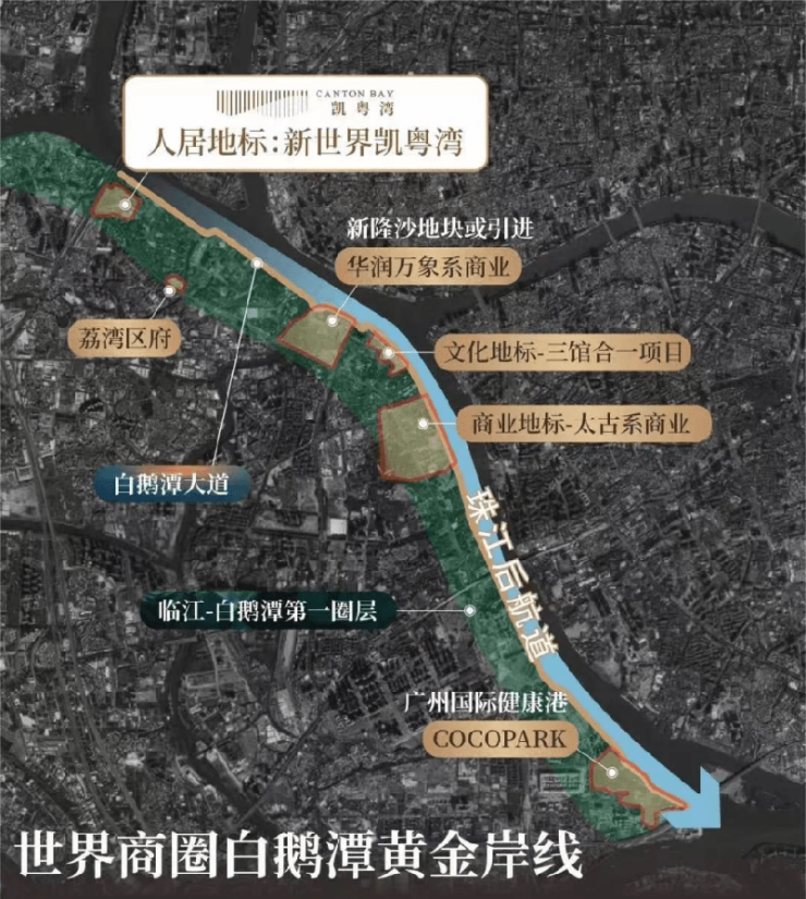 新世界凯粤湾交付美好人居,白鹅潭也即将交付许下的宏伟蓝图。太古商业项目、COCOPark、广船综合体、三馆合一......海量商业、文化地标的陆续兑现,串起了白鹅潭沿江约5公里的世界级商业走廊。