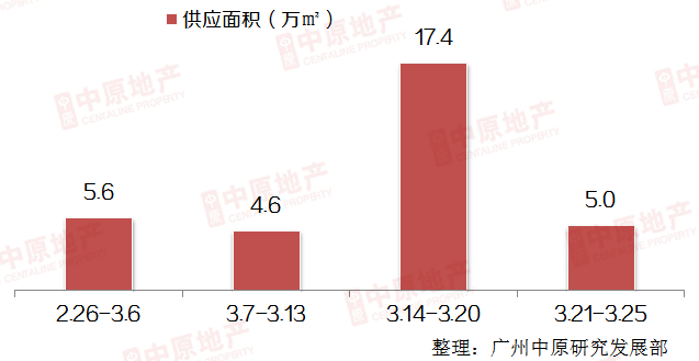 ▲3月统计周期内每周住宅新批预售情况(单位:万㎡)