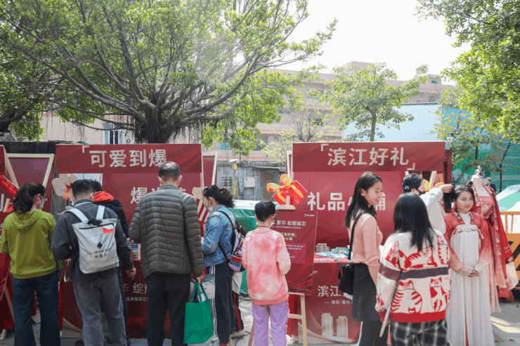 展厅内人声鼎沸,室外打造的滨江生活节也成为人气聚集地。滨水畔,音乐萦绕,知名乐队——D.N.M 乐队以经典粤语歌曲散布春的气息,开启一场滨江音乐会。