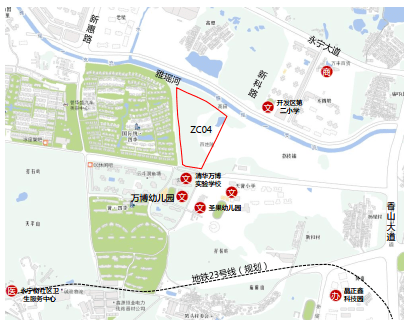 中新镇广汕公路南侧地块紧靠地铁21号线坑贝地铁站B出口,周边已有金科景业瀚景园、恒大紫荆学府等楼盘。