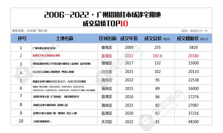 荔湾区广船二期、三期地块的成功出让,以187.60亿元的总价跻身广州标杆总价TOP10地块中第二名的位置。
