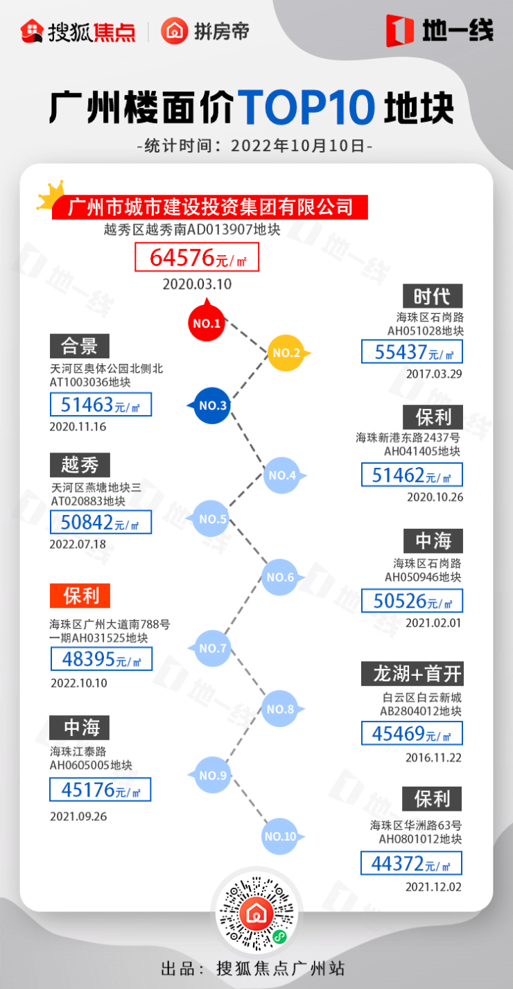 对了,目前广州标杆楼面价TOP10地块中,海珠区已占据了6宗。