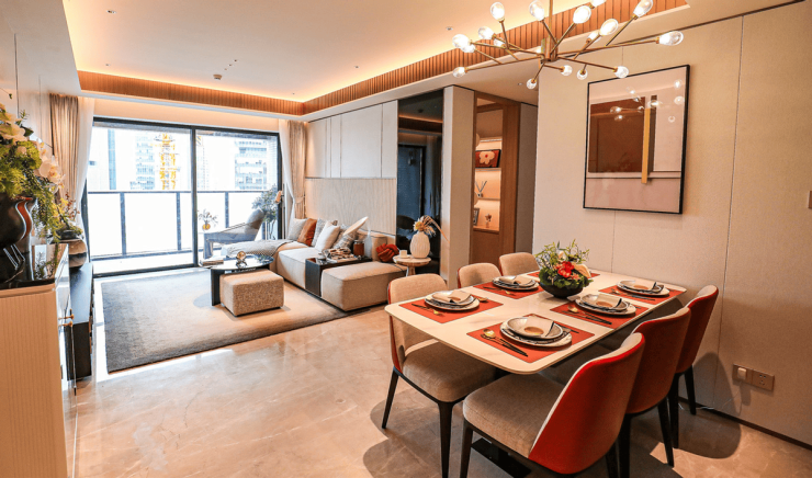 客厅是家人亲密相聚的主场,而非每天呼朋唤友的会所,即使是亲朋聚会开派对,下楼即可享K11 Select高端商业。