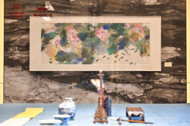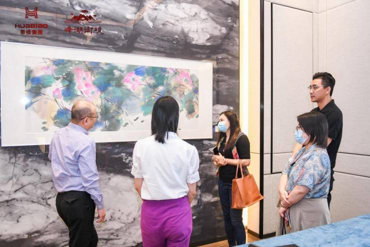一幅幅色彩纷呈的画作呈现在眼前,传递着深层次的美学造诣与品位。宾客们或驻足观赏,或细声交谈,都不约而同地沉浸在画家勾勒的东方画境之中。