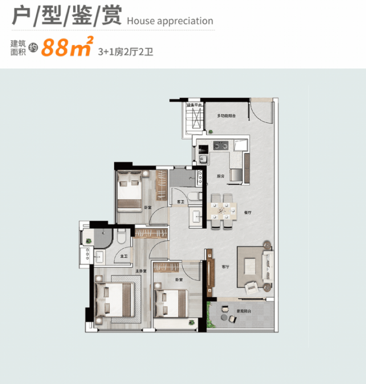 景观视野拉满的同时,户型同样让人惊艳。建面约88㎡带主套3+1房是天河市场上极其稀缺的小户型改善产品,总价仅450万起。