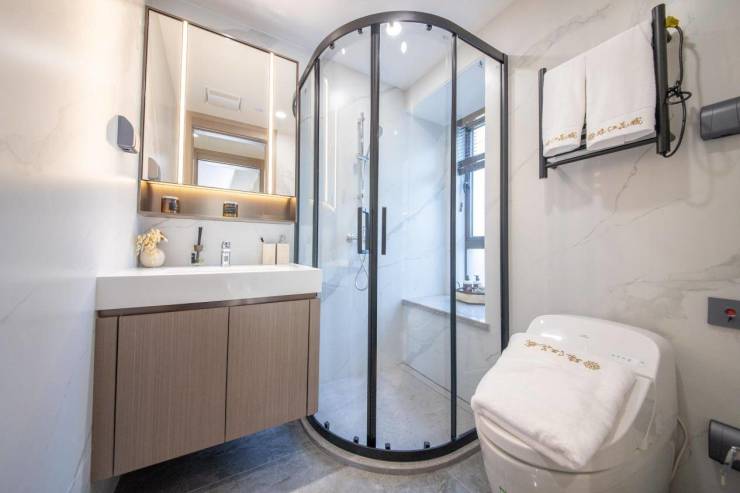 全新五期奢装交标全面升级,配置中央空调,专设智能灯光、兼具风干杀菌和照明功能的电动晾衣架、主卧一体式智能马桶等智能交标。