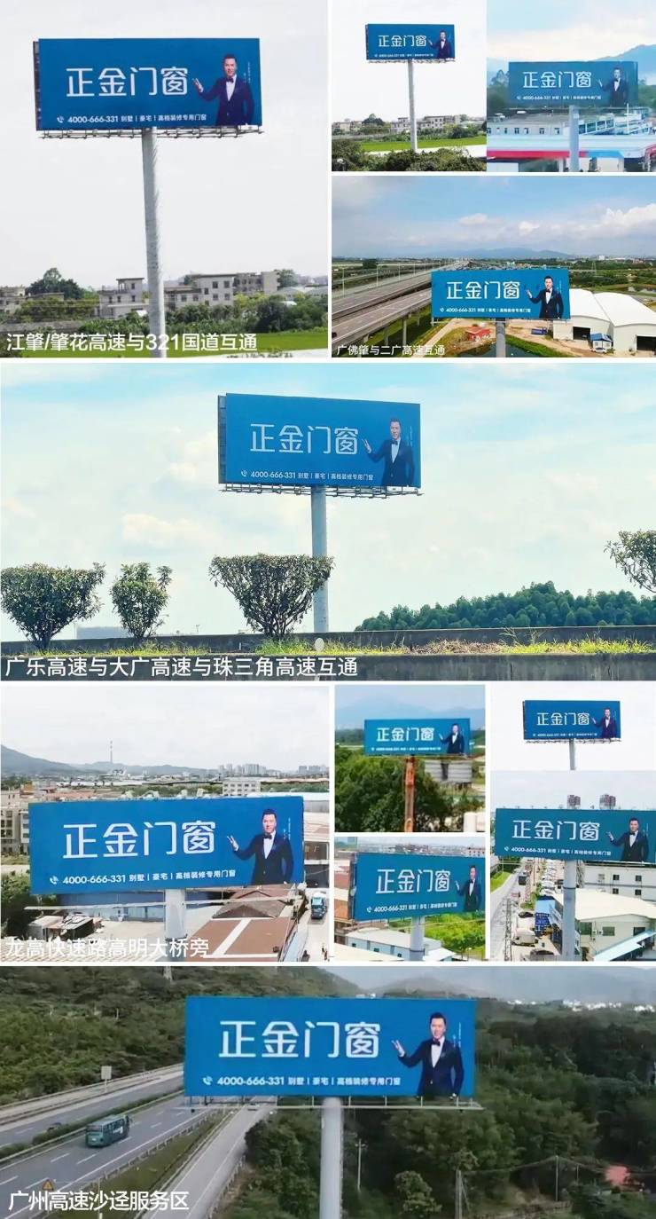 正金门窗为了让更多消费者了解品牌的新形象和扩大品牌影响力,拉升品牌知名度,以高炮广告形式密集投放重点高速干线核心路段,品牌强效曝光,实现大范围辐射,抢占流量制高点。