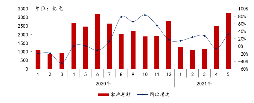 统计显示,2021年1-5月,TOP100企业拿地总额13274亿元,拿地规模同比增长14.3%,但门槛值为29亿元,与去年同期相比有所下降。