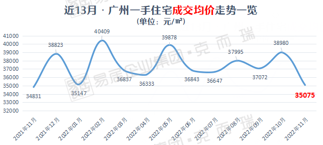 去化不佳,价格自然压力倍增!克而瑞统计到,11月广州商品住宅均价环比下降10.02%至35075元/㎡。虽有成交结构的影响,但近期房企持续以一口价、折扣等优惠让利促销也是不争的事实。