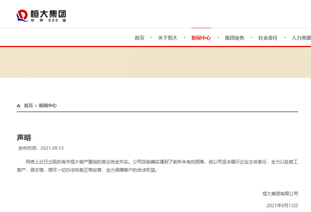 恒大辟谣破产重组!公司确有困难,将想尽一切办法恢复正常经营!