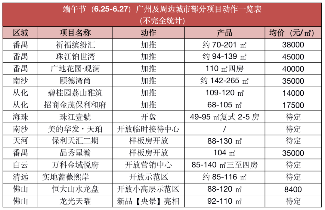 除了上述有开放动作的项目大热之外,其他项目也纷纷推出各类优惠活动,引来了购房者前往现场。用一句话来形容这个端午的广州楼市:大海啊全是水,楼盘销售啊忙出了眼泪。