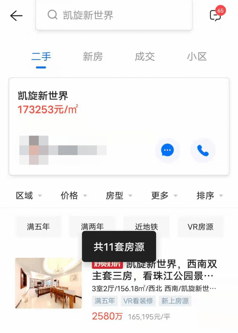 以降价最为“大跳水”的珠江新城楼盘凯旋新世界为例,记者早间登录贝壳APP时,页面显示,该小区二手房参考均价为173253元/平方米,相比官方88311元/平方米的交易参考价格高了84942元/平方米,在售房源则有11套。但如今,搜索“凯旋新世界”,搜索结果显示没有相关房源,此前的参考价格也被隐去。