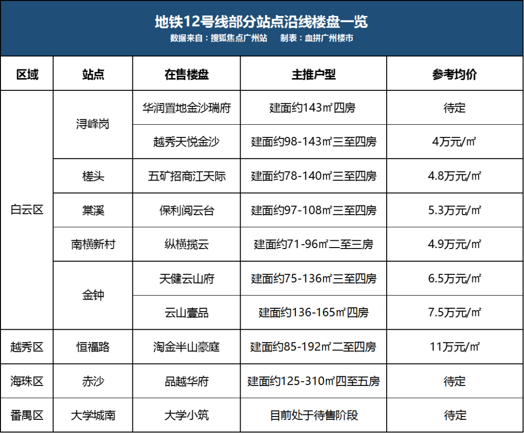 其中,就包括有金沙洲的华润置地金沙瑞府、越秀天悦金沙以及搓头站的五矿招商江天际,这几个项目对12号线带来的交通利好十分依赖。