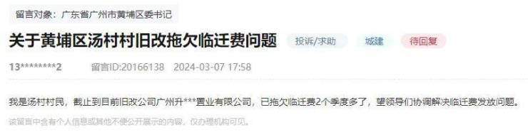 汤村旧村改造项目曾因临迁费问题,一度被热议,背后的操刀者是升龙。2020年7月,汤村全面启动整村动迁工作;同年9月,复建安置区动工。当时,升龙还喊出了“一次拆迁、一次建设、三年回迁”的口号,预计最快2020年完成安置房工期建设。可惜,计划赶不上变化,后面因为回迁房停工、拖欠临迁费等问题,升龙在村民心中的口碑也是直线下滑。