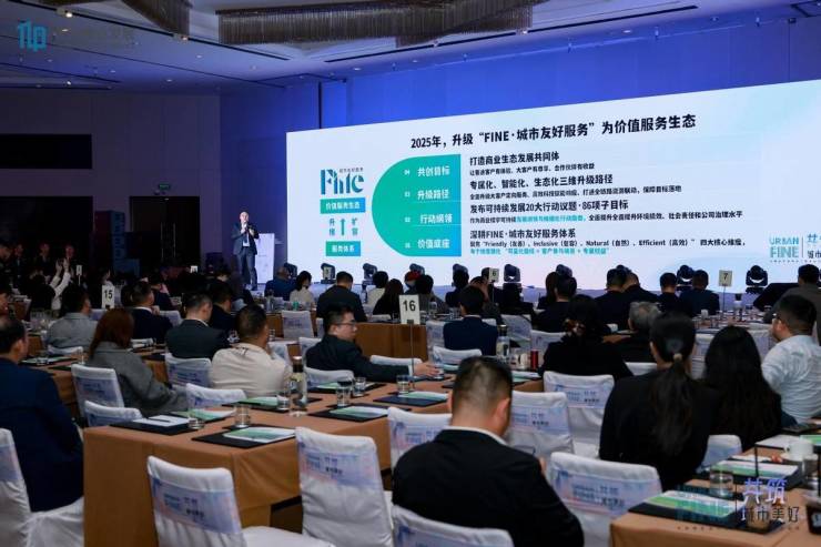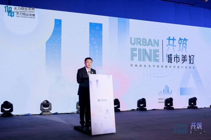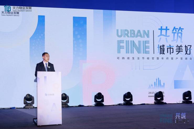 天力物业发展助理总裁肖阳先生作《“共筑·城市美好”2025可持续生活节暨FINE城市友好服务体系价值收官汇报》