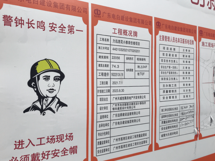 至于项目本身,依现场信息显示,建筑面积为22056㎡,总高度74.3米,地上24层,地下2层,计划竣工时间为2023年8月30日。