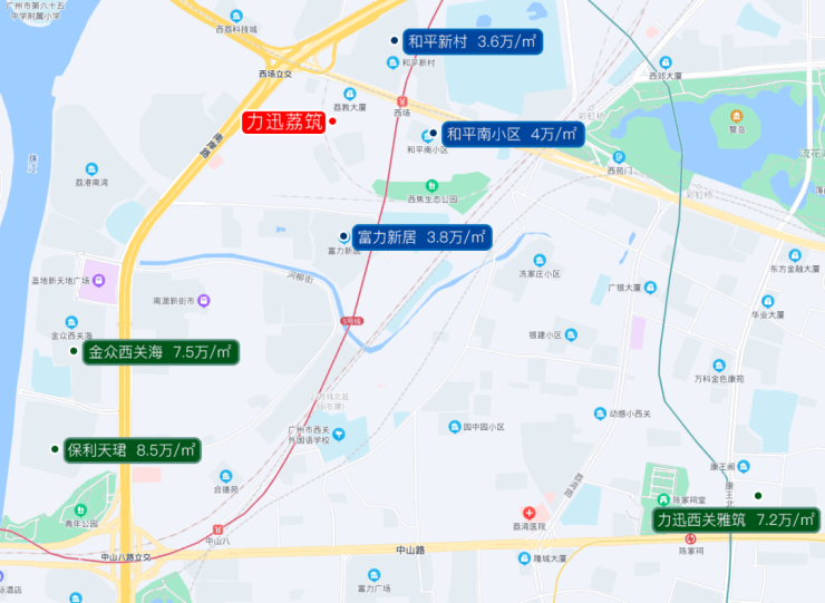 像和平南小区、和平新村、富力新居等,价格在3.6-4万元/㎡不等。因此,该片区也是积累了一定的换房需求。