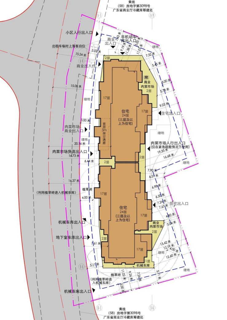 另依据规划文件,项目虽规划有2栋楼,均为24层,但连成一体,分为南、北塔。