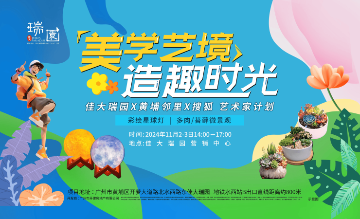 11月2日至3日,连续两日,搜狐房产携手黄埔邻里将在佳大瑞园推出「美学艺境 造趣时光」艺术家计划。