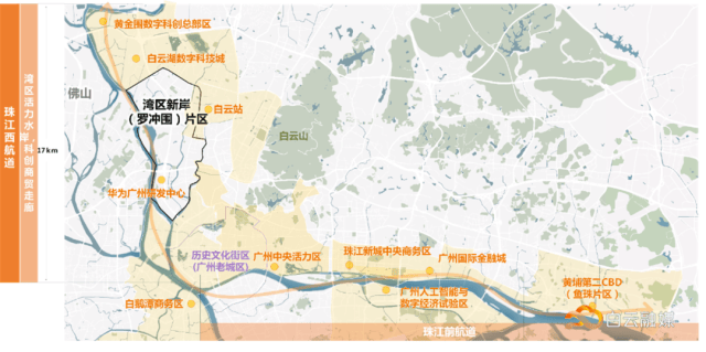 影响甚至不局限于罗冲围一带。白云区提出要通过实施罗冲围片区和三元里等城中村改造,拉通横贯“白云山—白云新城—白云站—珠江西航道”的高质量发展带。白云区将大力建设珠江西航道“十公里”黄金岸线,同时围绕华为广州研发中心、白云湖数字科技城等,结合周边城市更新改造,统筹布局提升产业空间和居住空间,推动生产、生活、生态“三生融合”,建设24平方公里的滨江科创活力产业发展带。