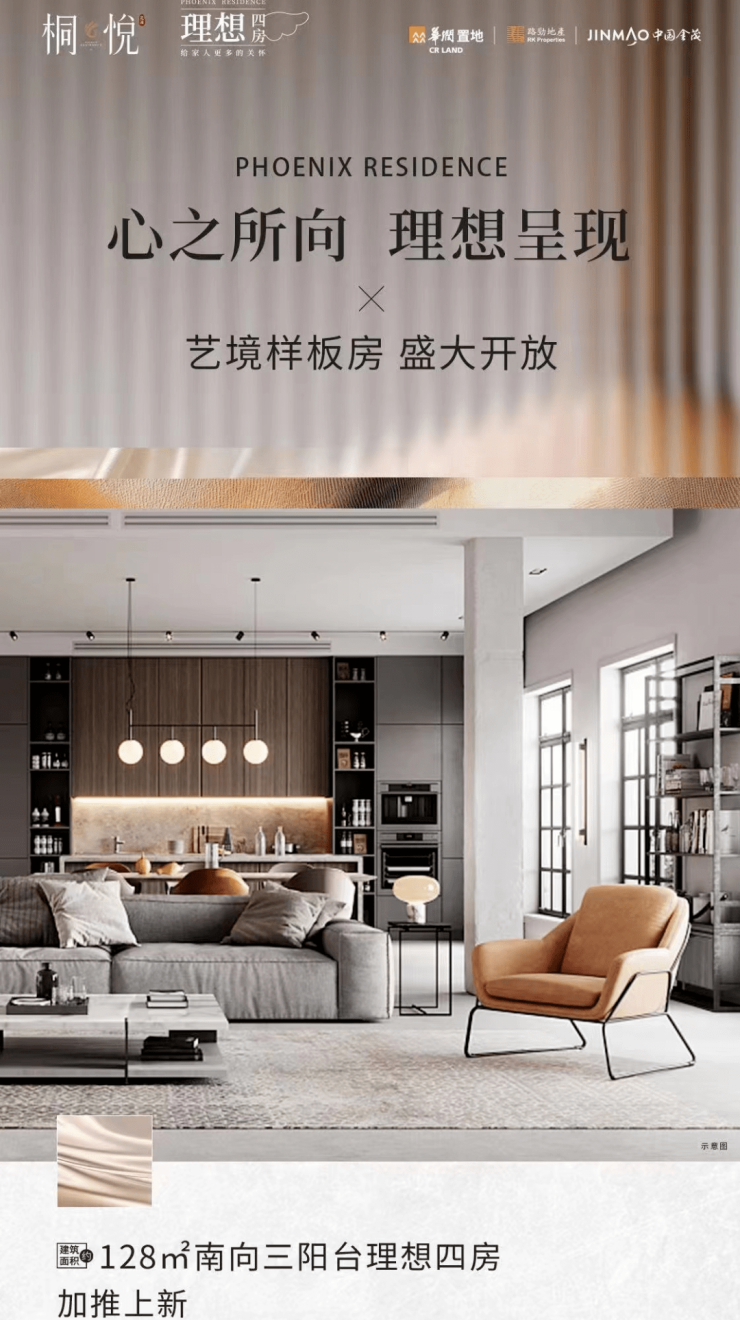 桐悦由华润置地、路劲地产、中国金茂联合开发,共由17栋19层的高电梯洋房组成;整体采用围合式点状分布,板式设计,户户朝南,很好的保证了每栋楼的观景。