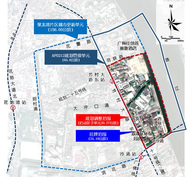 根据控规方案,聚龙湾片区城市更新单元北至花蕾路、南至浣花路、西至招村涌、东至珠江,面积为156.05公顷。其中,启动区子单元涉及AF0212规划管理单元,面积为65.6公顷。项目位于白鹅潭聚龙组团,毗邻白鹅核心商务区,是广佛同城战略的重要节点。