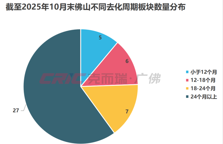 去化周期在24个月以上的板块有27个,较去年同时期增加6个,在这其中南海区板块数量最多,有9个。