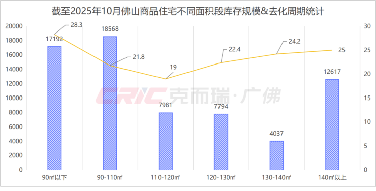 克而瑞数据监测显示,截至10月末佛山140㎡以上户型库存12617套,去化周期25个月。