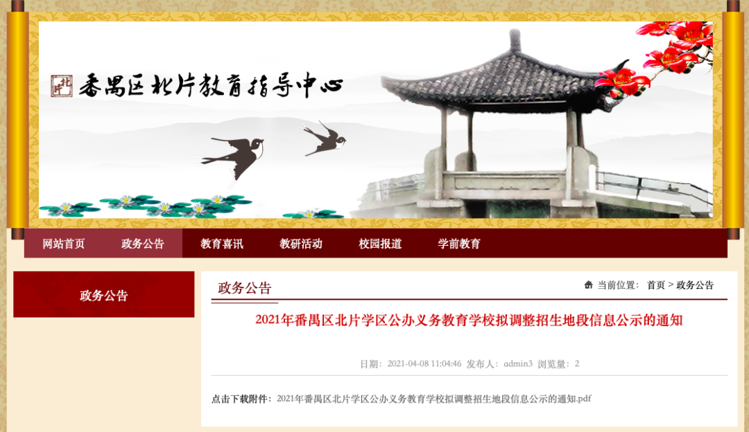 发布了拟调整招生地段信息的公示。