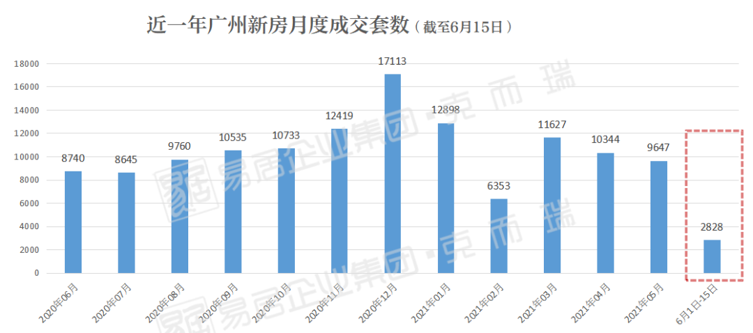据克而瑞较新数据显示,6月1日-6月15日广州新房成交面积为30.04万㎡,成交套数仅2828套,可以说6月上半月的成交量验证了调控新政的效果。